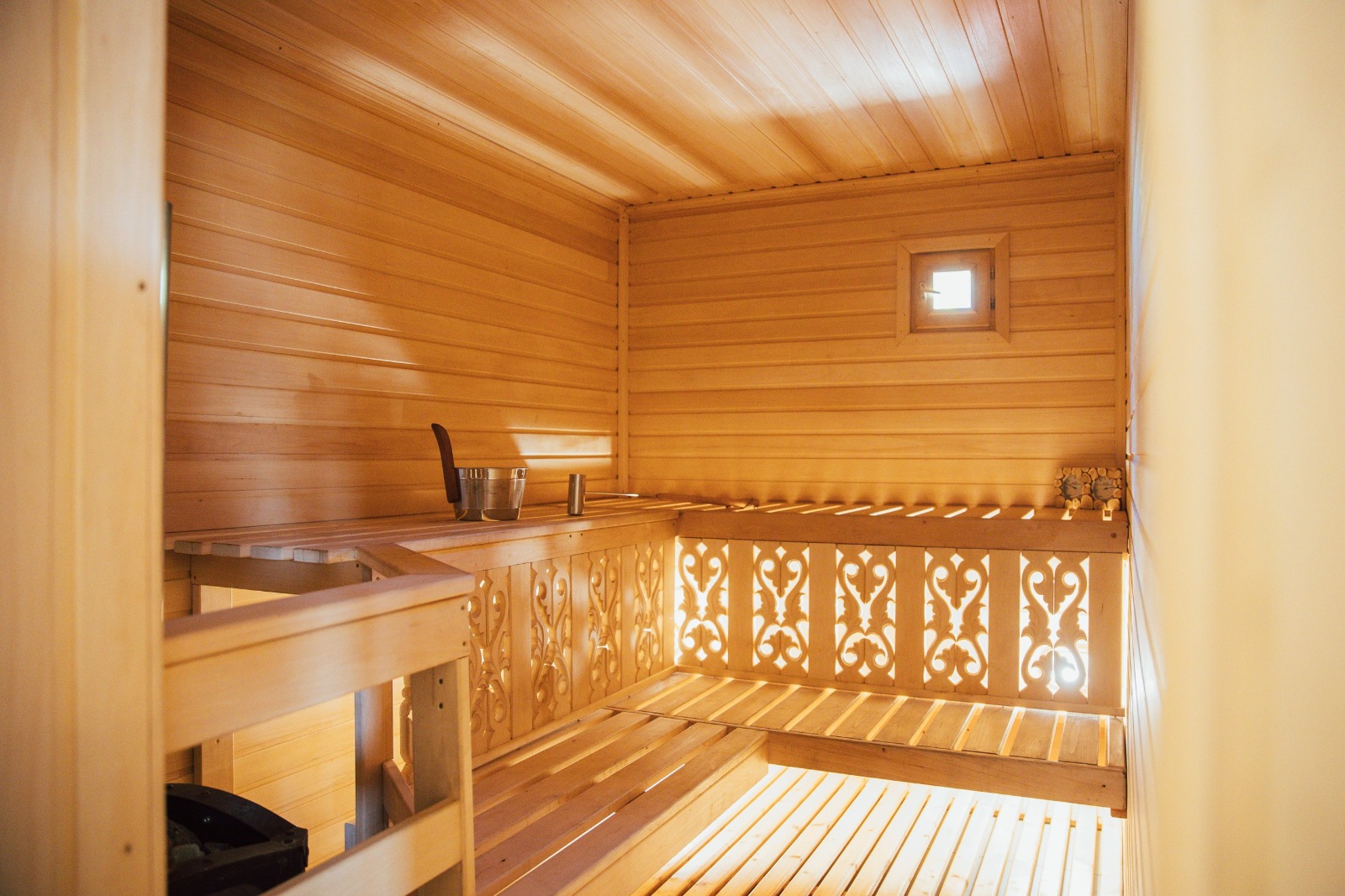Продуманная до мелочей банька встречает гостей безупречным уютом. Бревенчатые стены, жар печи, шелест веника и аромат березы. Здесь смывается усталость, а на смену ей приходит легкость и ясность мысли. Все создано для того, чтобы забыть о суете и по- настоящему отдохнуть.